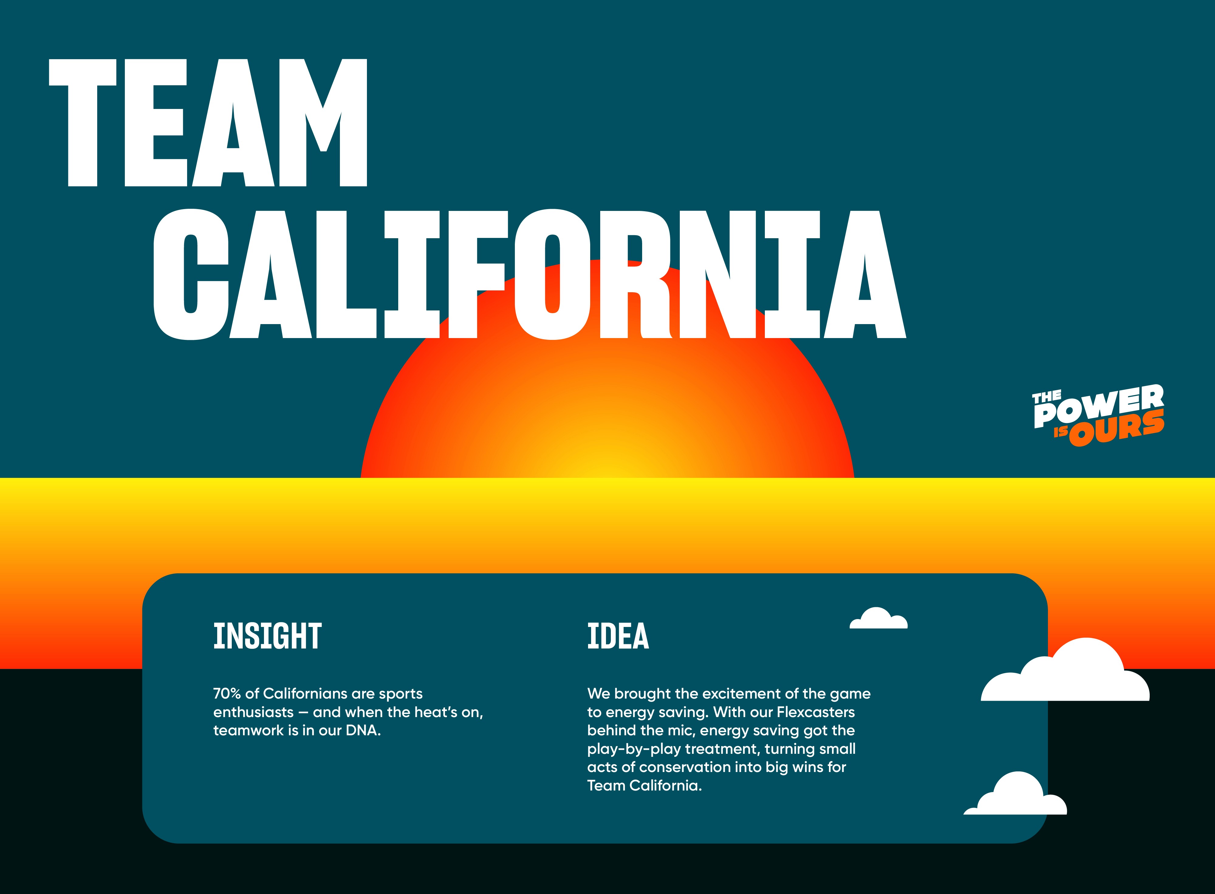 70% of Californians are sports enthusiasts, and when the heat is on, teamwork is in our DNA. So we brought the excitement of the game to energy saving. With our Flexcasters behind the mic, energy-saving got the play-by-play treatment, turning small conservation efforts into big wins for Team California.