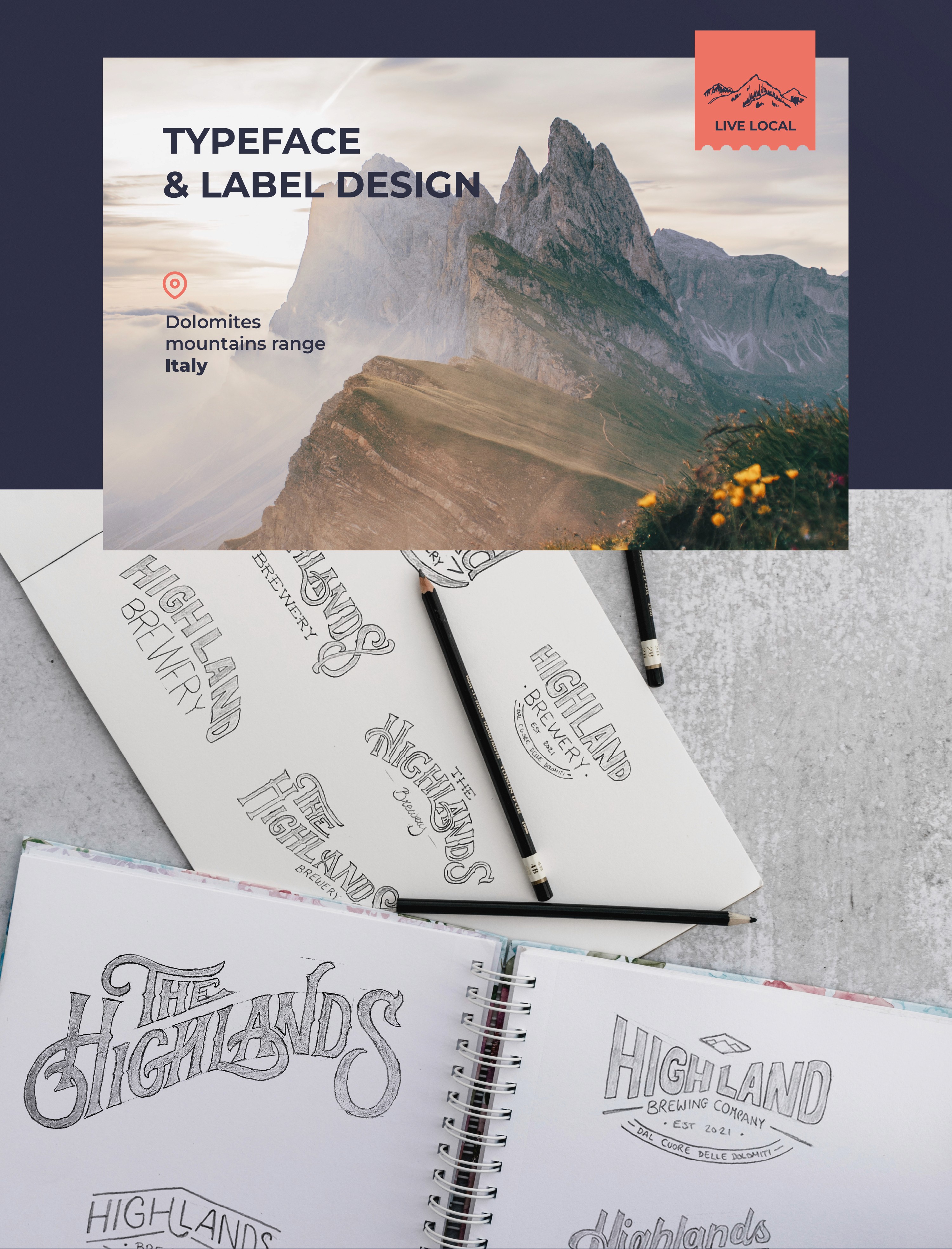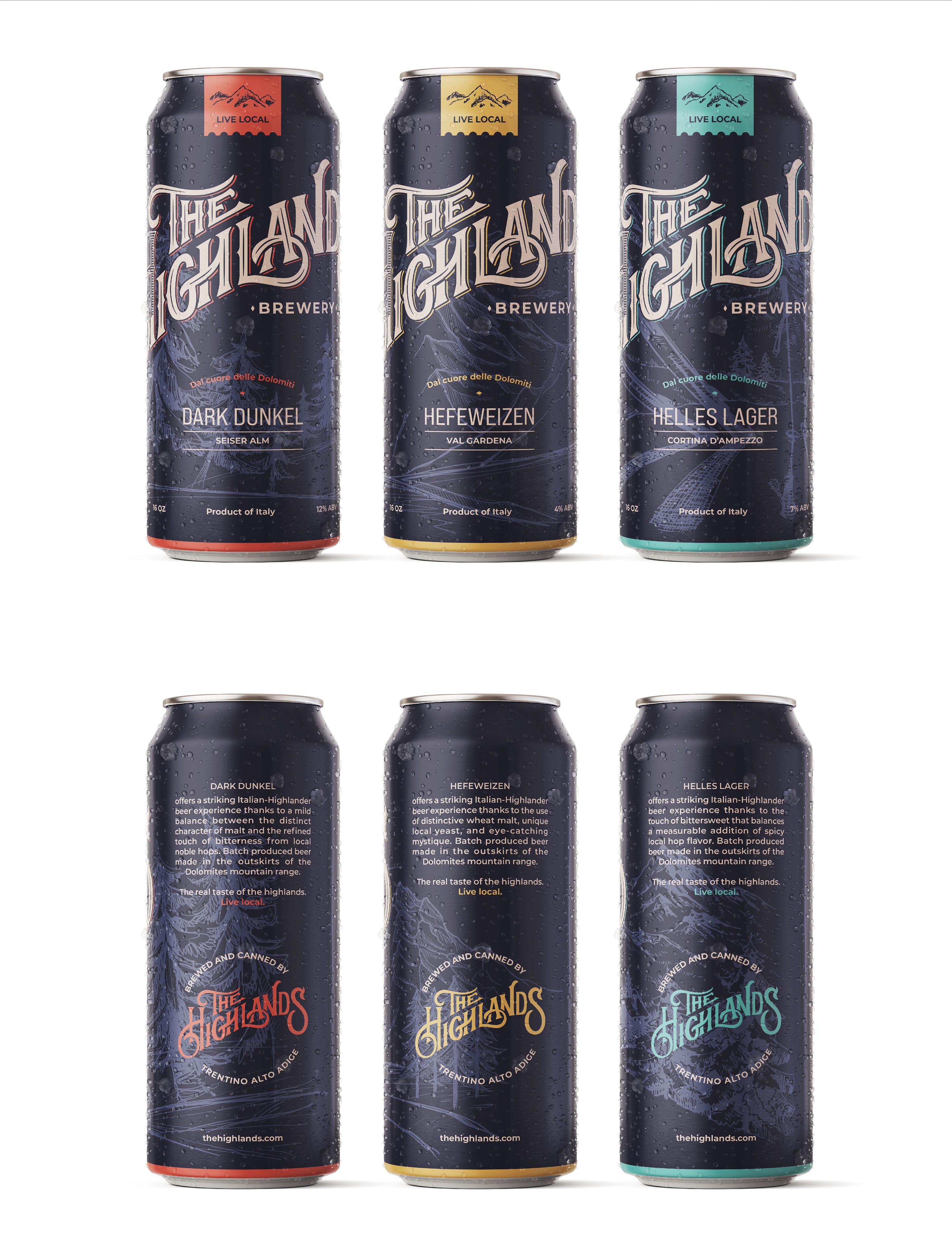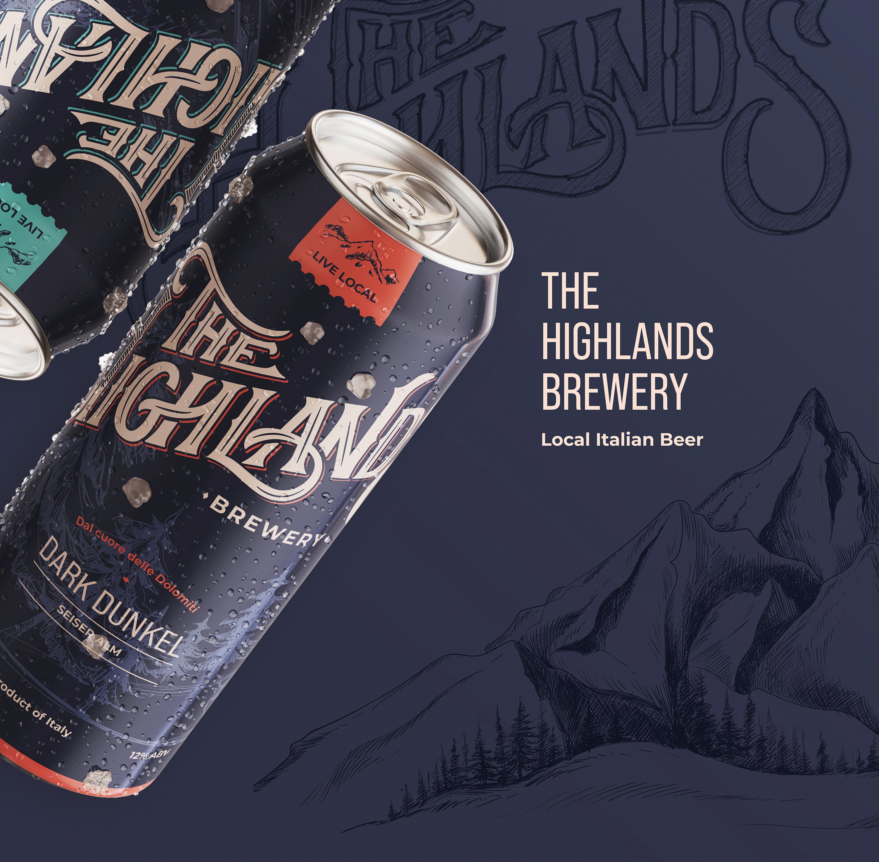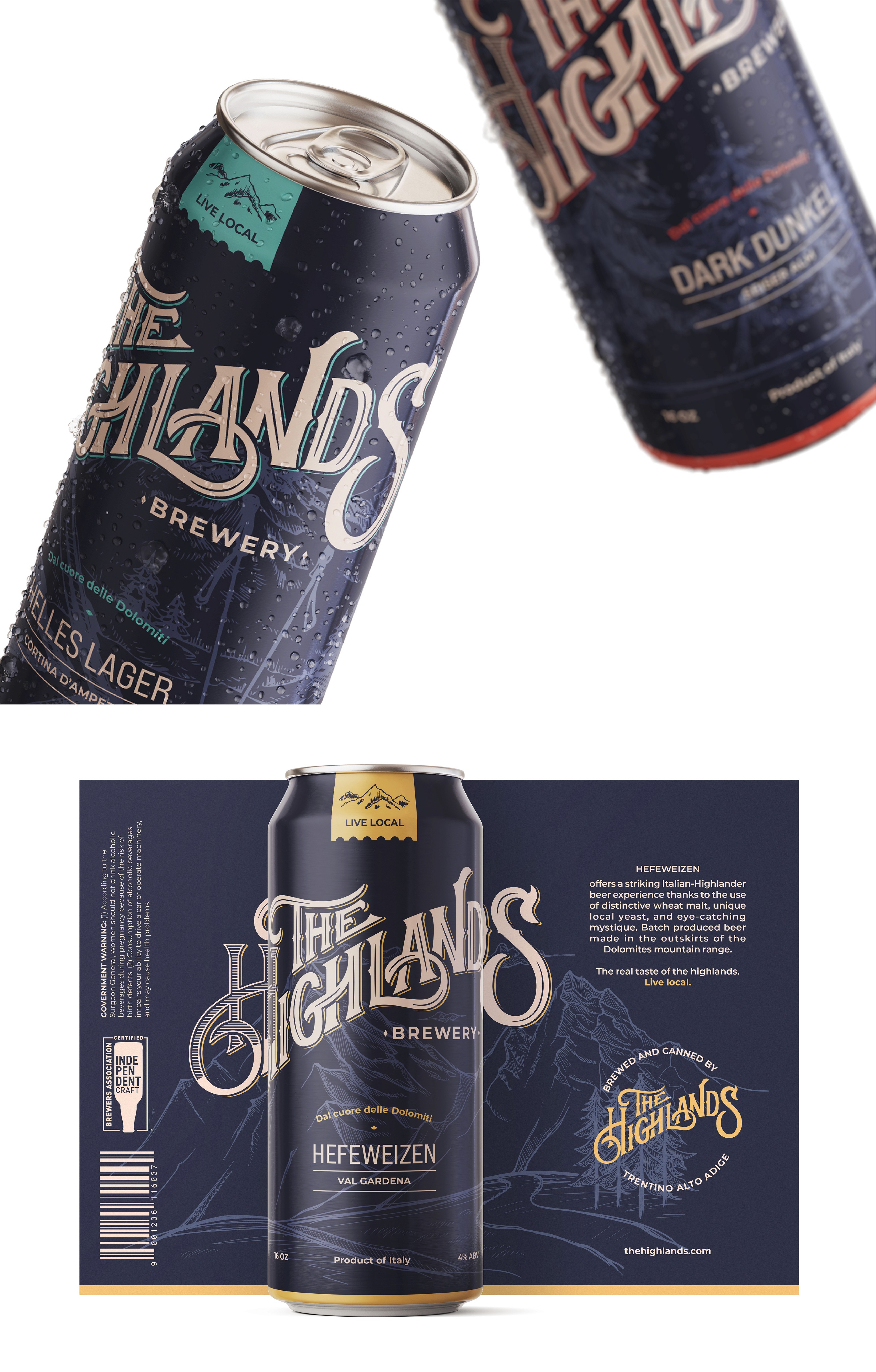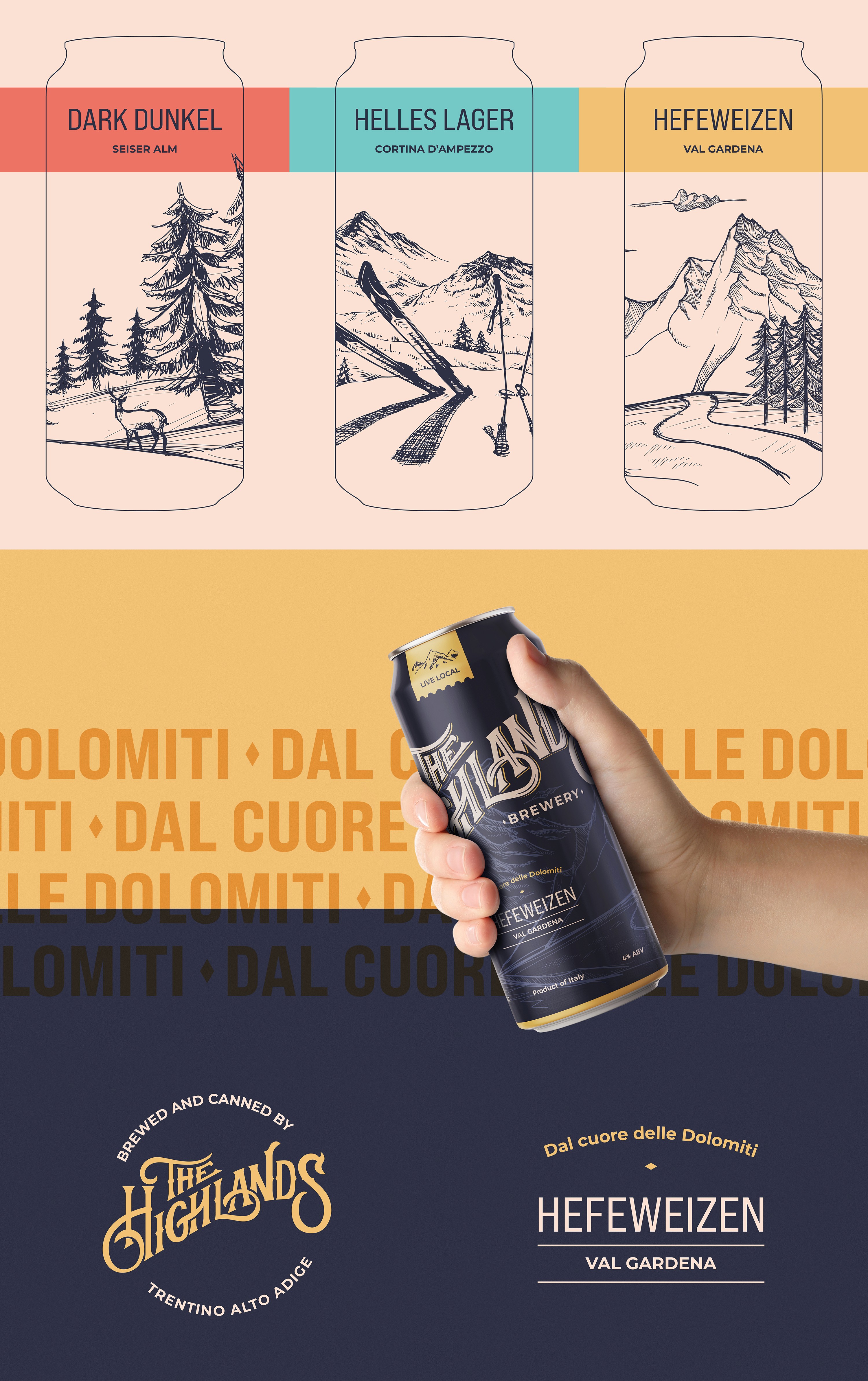 Typography and label design concept for an Italian Brewery based in the Dolomites, for an American audience.